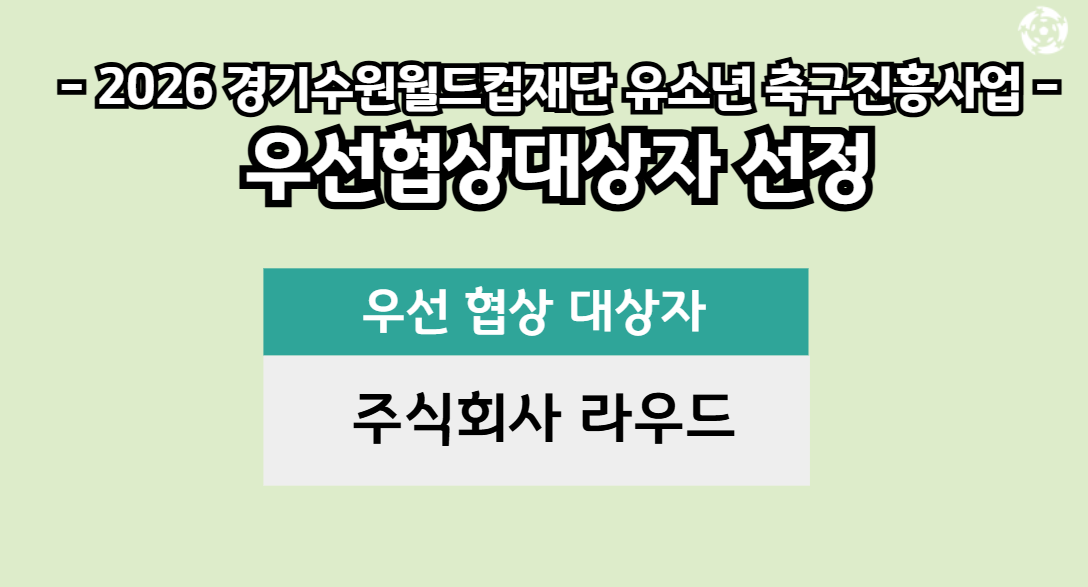 2026년 경기수원월드컵재단 유소년 축구진흥사업 용역 입찰 우선협상대상자 선정 결과 발표입니다.