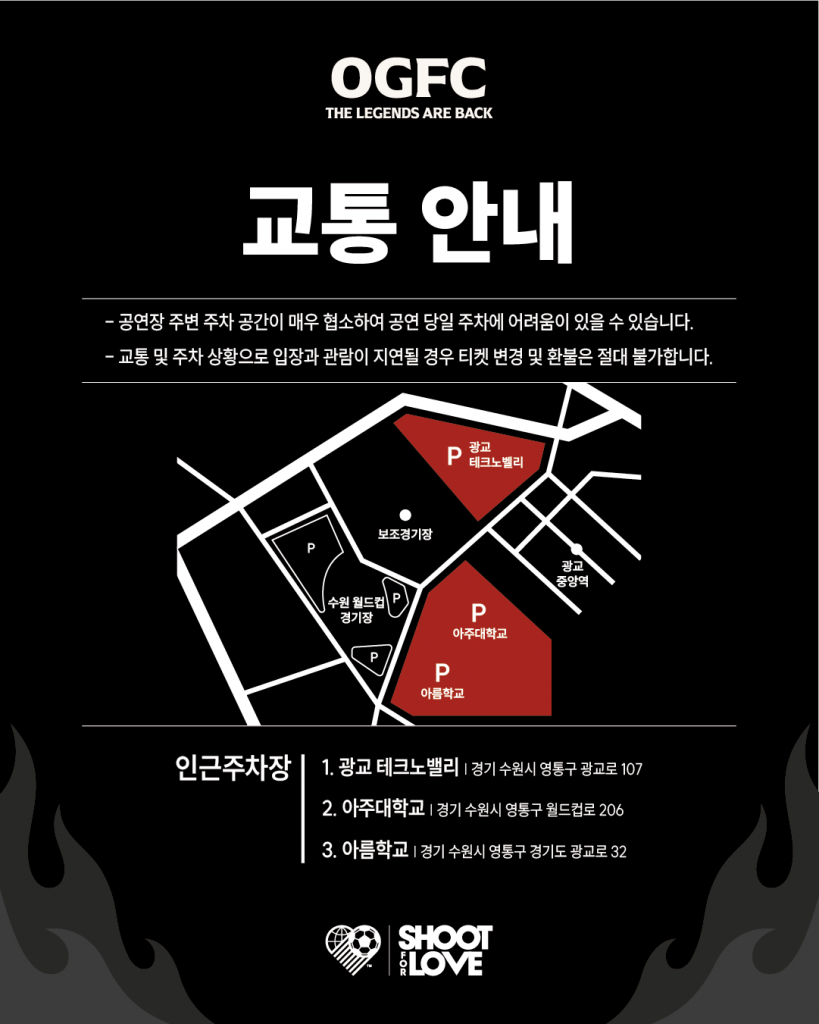 ‘2026 OGFC vs 수원삼성 레전드매치’ 인근 주차장 안내